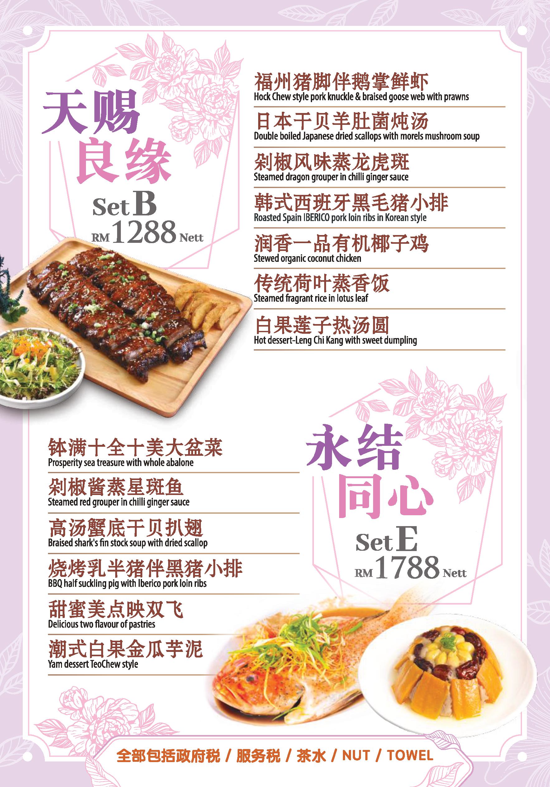 - 订金为RM2000(小厅),RM5000(宴宾楼大厅),喜宴务必于落实日期后即缴付订银,恕不退还於取消婚宴